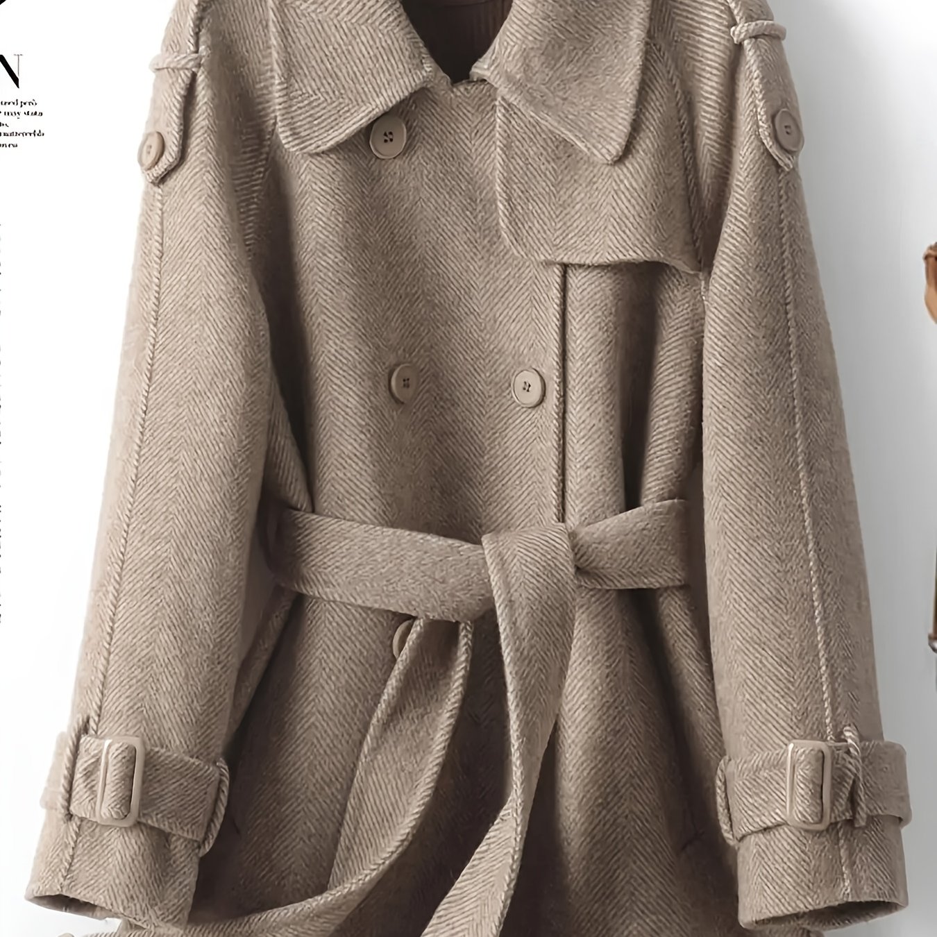 TEMU 여성용 우아한 트렌치 코트 - /중성 톤, 구조적인 칼라 & 벨트 허리, 더블 브레스트 버튼 앞면 클로저, 세탁기 사용 가능한 가을/겨울 겉옷, 캐주얼 & 포멀 행사용, 겨울 코트, 포멀 행사 복장, 세련된 디자인, 가을자켓, 여성겨울코트, 여성빅사이즈원버튼겨울코트, 여성자켓, 롱코트, 코트 여성
