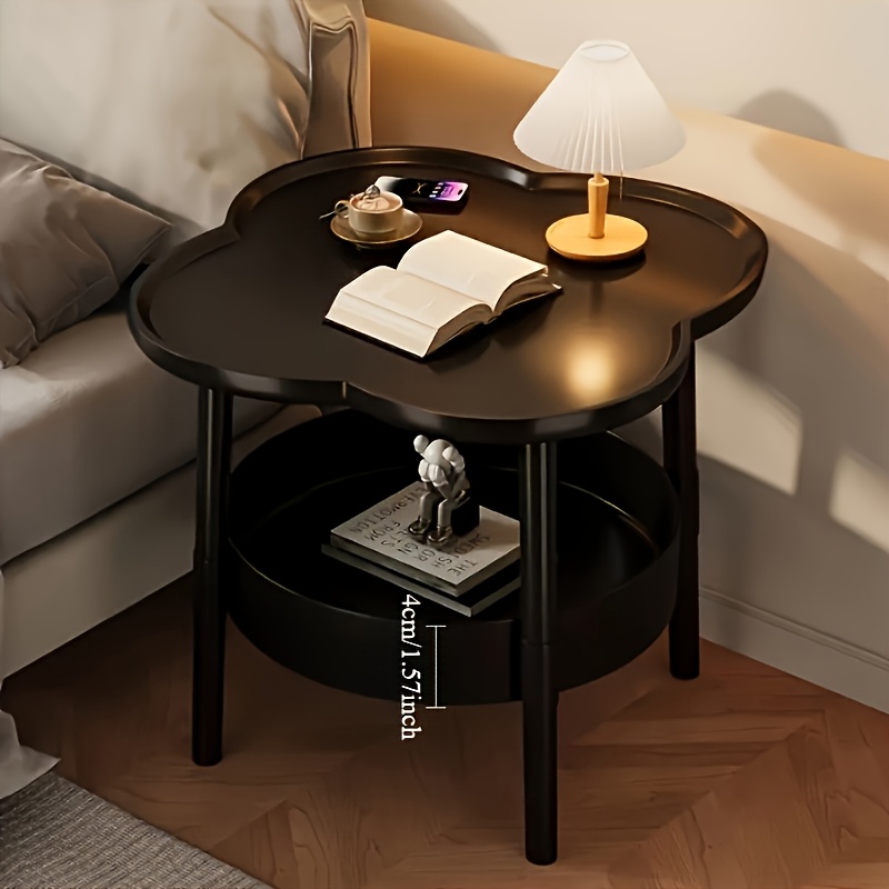 TEMU 업그레이드된 두꺼운 플라워/플라스틱 라운드 커피 테이블 - 이층 수납 선반 포함, 조립식 비목재 침대 옆 테이블, 공간 절약형 장식 가구, 소품 정리용 플라스틱 이층 선반, 침실 및 서재에 적합