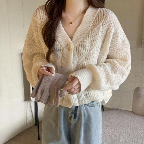[셀러허브_여성트랜드패션]여자 크롭 가오리핏 니트 긴팔 꽈배기 가디건 브이넥