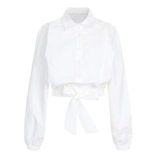 [샵앤][샵앤] 여성 카라넥 퍼프 가오리 밑단리본 루즈핏 블라우스 EGG-WBL-20773-화이트