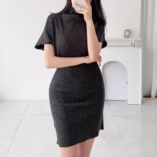 [옷자락]여성 빅사이즈 가오리핏 반팔 니트 모임룩 롱원피스