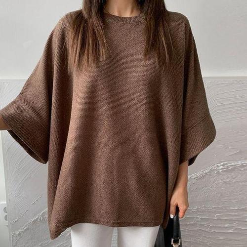 [미라클세븐]여성 반오픈 카라 판초형 반팔 니트 가오리핏