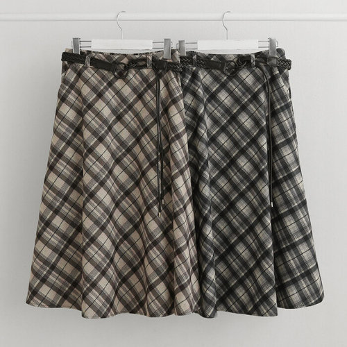 [옷자락] 여성 가을 체크패턴 플레어 롱스커트 벨트포함