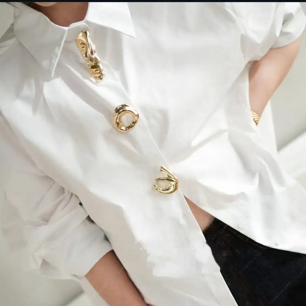 2025년 가을 신상 여성용 코튼 긴팔 단색 블라우스 셔츠 트렌디 루즈핏 캐주얼 탑 여성 의류