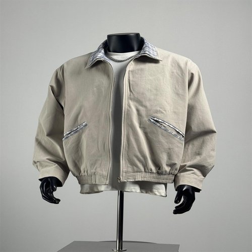 제로투올샵2 / 남성 체크 카고 재킷 봄 가을 레트로 오버핏 베이지화이트 m