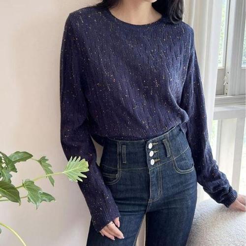[셀러허브_여성트랜드패션]여자 여성 겨울 여성니트티 여자니트티셔츠 크롭 가을 라운드 펀칭 니트티 니..