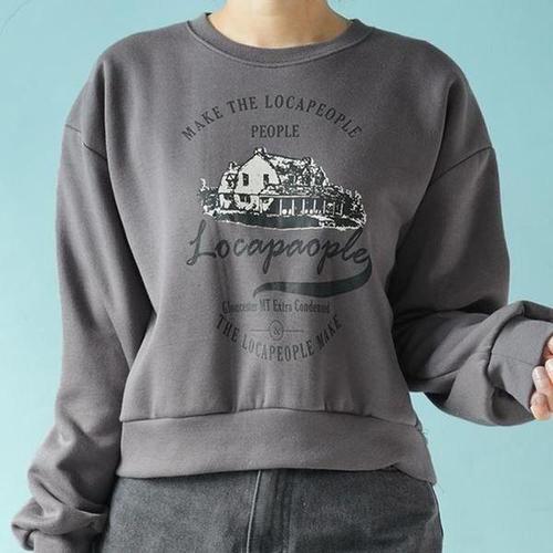 [셀러허브_여성트랜드패션]여성 X 세미 셔츠 크롭 기모 티 차콜 맨투맨 봄 가을