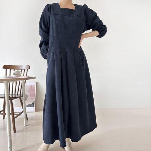 [신상오픈런]여성 스퀘어넥 롱원피스 가을 하객룩 핀턱 플리츠 포켓 디자인