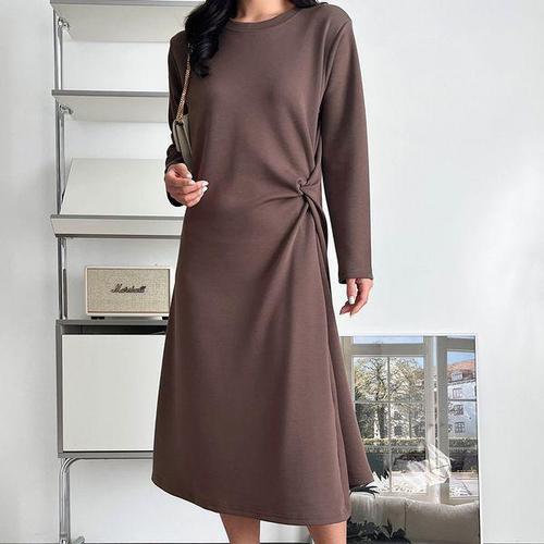 [옷자락] 여자 가을 찰랑핏 셔링 유넥 슬림 긴팔 여리 롱원피스