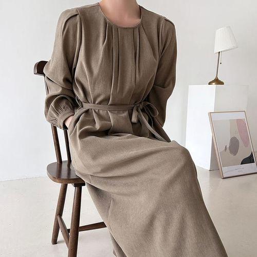 [신상오픈런]여성 퍼프 소매 핀턱 롱 원피스 가을 하객룩