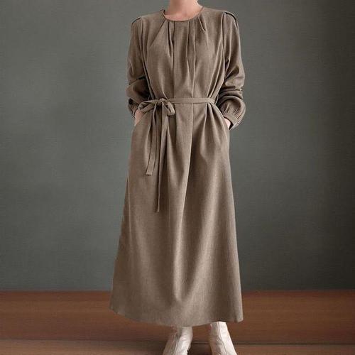 [신상오픈런]여성 가을 큰 사이즈 셔링 퍼프 골덴 롱드레스