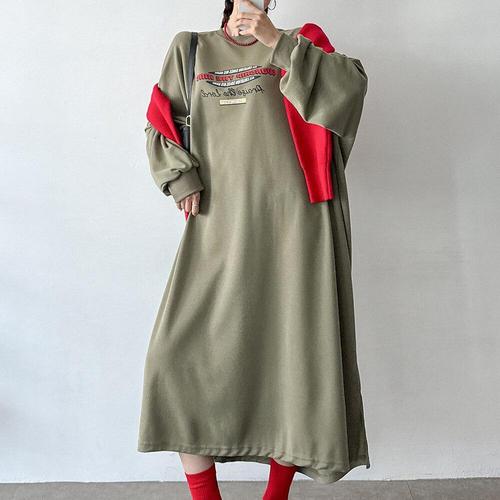 [문에이블]문에이블 여자 여성 가을 봄 간절기 루즈핏 베이직 빅사이즈 베이직 편한 긴팔 롱 원피스