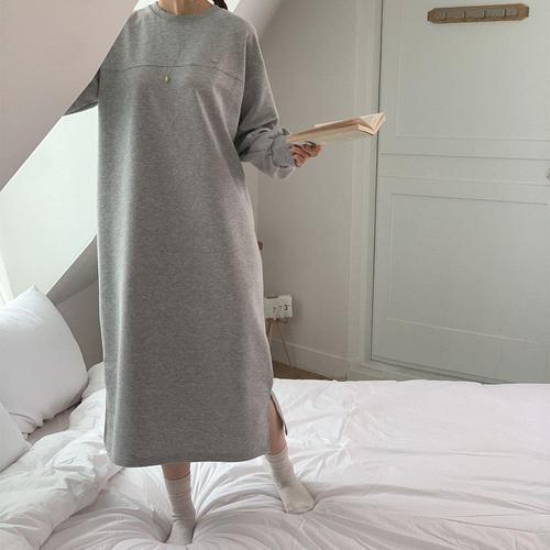여성 라운드넥 긴팔 롱 원피스잠옷 11HO0001 빅사이즈 루즈핏 오버핏 가을