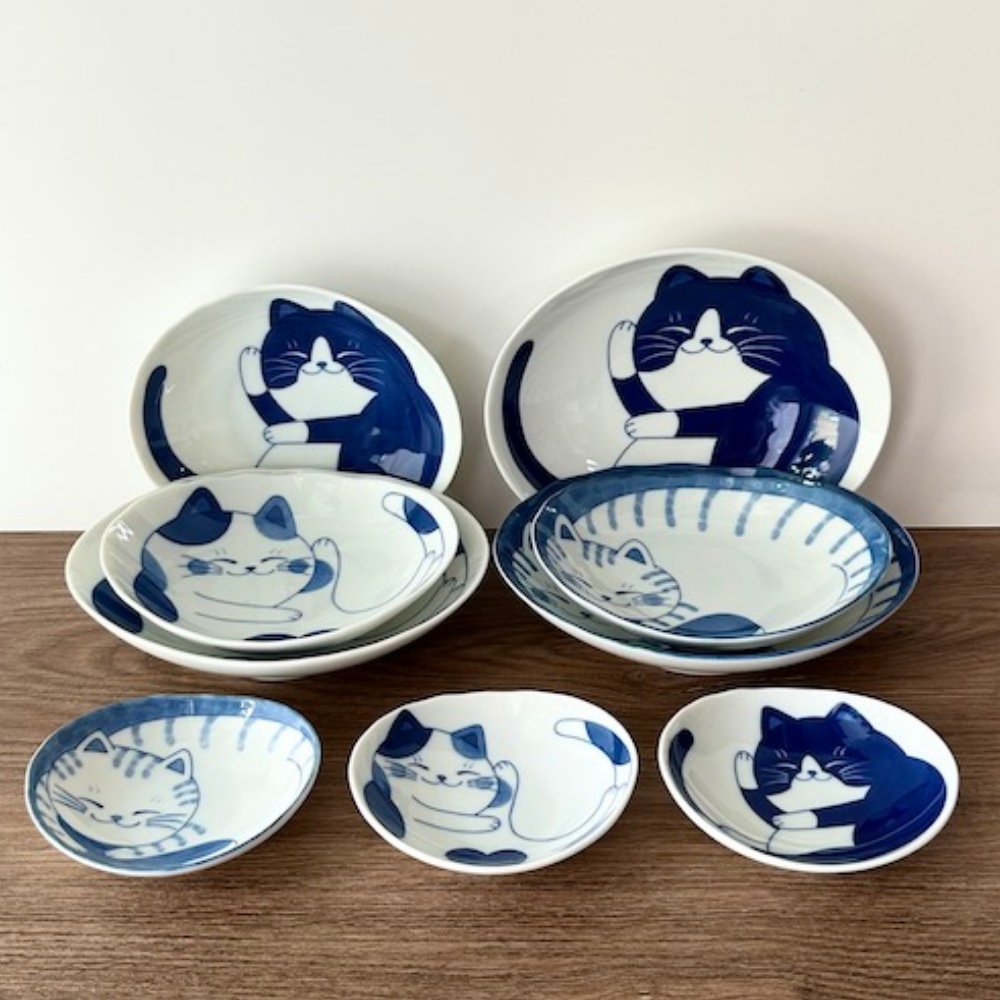 시치타 고양이 접시 14cm 일본그릇 간장종지 소스볼 도자기 미니 반찬 작은