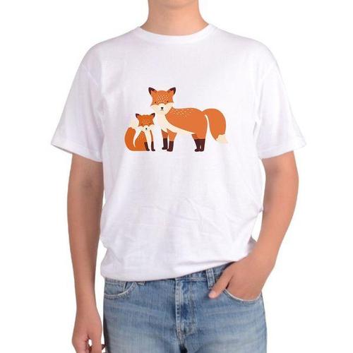 [에이치플러스몰]반팔 라운드티 여우 가족 FOX 사랑 러브
