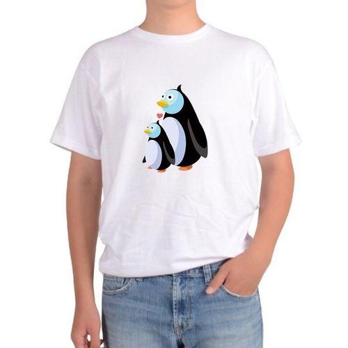 [에이치플러스몰]반팔 라운드티 펭귄가족 엄마펭귄 아기펭귄