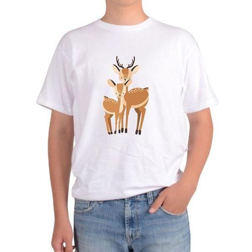 [에이치플러스몰]반팔 라운드티 사슴가족 사슴형제 커플