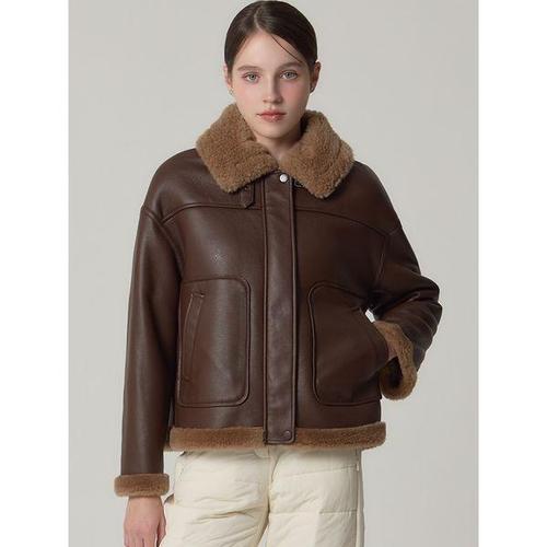 [바쏘옴므]다크브라운 비건레더 양털무스탕 점퍼 WSZ4UA46ABR_DG