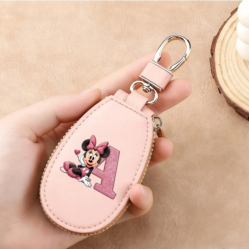 디즈니 미키 미니 마우스 패션 키 가방 만화 애니메이션 프린트 레터 다기능 간단한 미니 지갑 키 체인 보관 가방