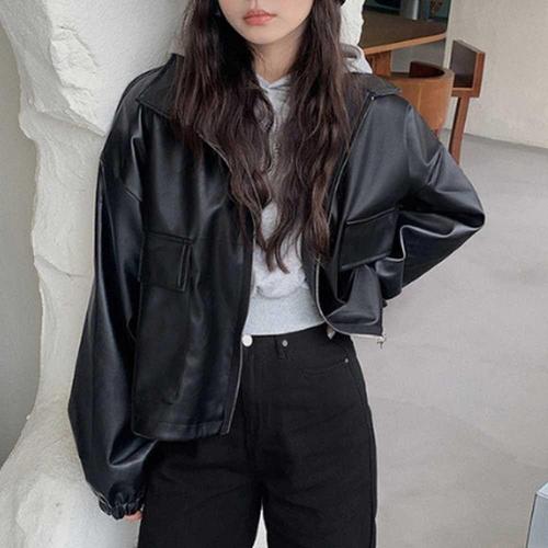 주말 외출 간절기 여자 아우터 코디 레더 가죽 자켓 WFL762R