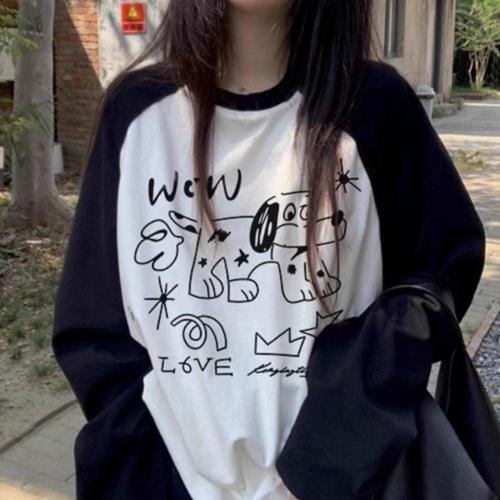 강아지 프린트 배색 긴팔 티셔츠 JSC-d0079 (WFHUO68)
