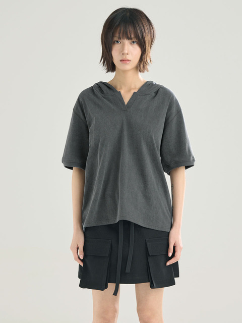 [서니드] 피그먼트 후디 티셔츠 차콜