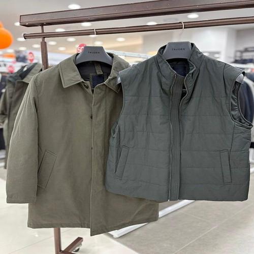 [트루젠]남성 겨울 거위털 3웨이 카키 조끼 분리형 프리미엄 구스다운 패딩 롱 맥코트형 점퍼