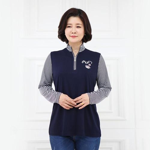 엄마옷 기모 지퍼 카라 티셔츠 516BMN387 중년여성/50대/60대/마담/빅사이즈/할머니옷