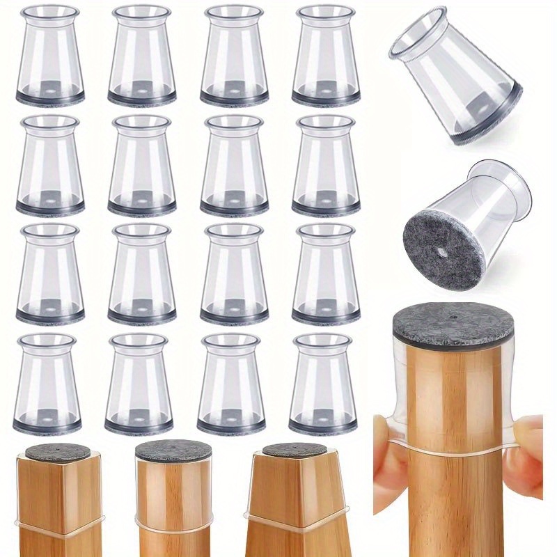 TEMU 16개 원형 실리콘 의자 다리 보호대, 금속 끝 바닥 보호대, 가구 다리에 적합, 저소음 , 미끄럼 방지 의자 다리 보호대 - 투명 실리콘, 펠트 패드 포함, 바닥 보호, 소음 감소, 전원 불필요