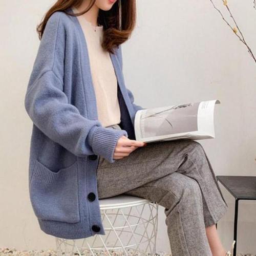 [셀러허브_여성트랜드패션]ONM 여성 롱 데일리 니트 가디건 보온 두꺼운 겨울 루즈핏