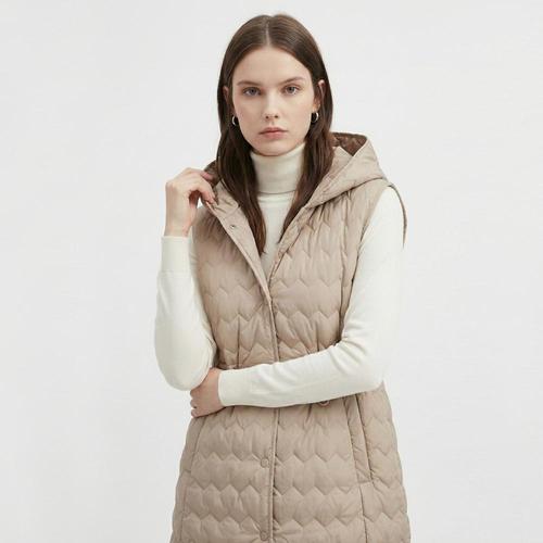여성 경량 후드 퀼팅 레이어드 패딩 롱조끼 JVL-WVS-21038-베이지