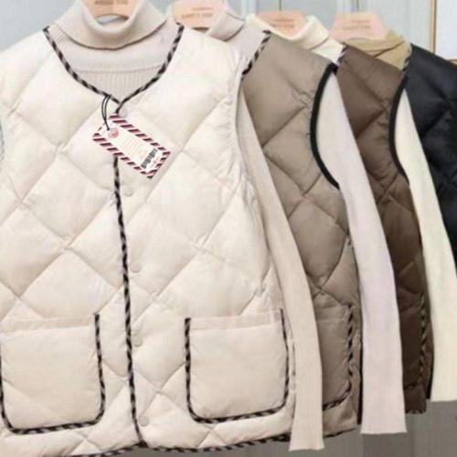 여성용 경량 퀼팅 단추 오버핏 패딩 조끼 외투 WFLMDQX