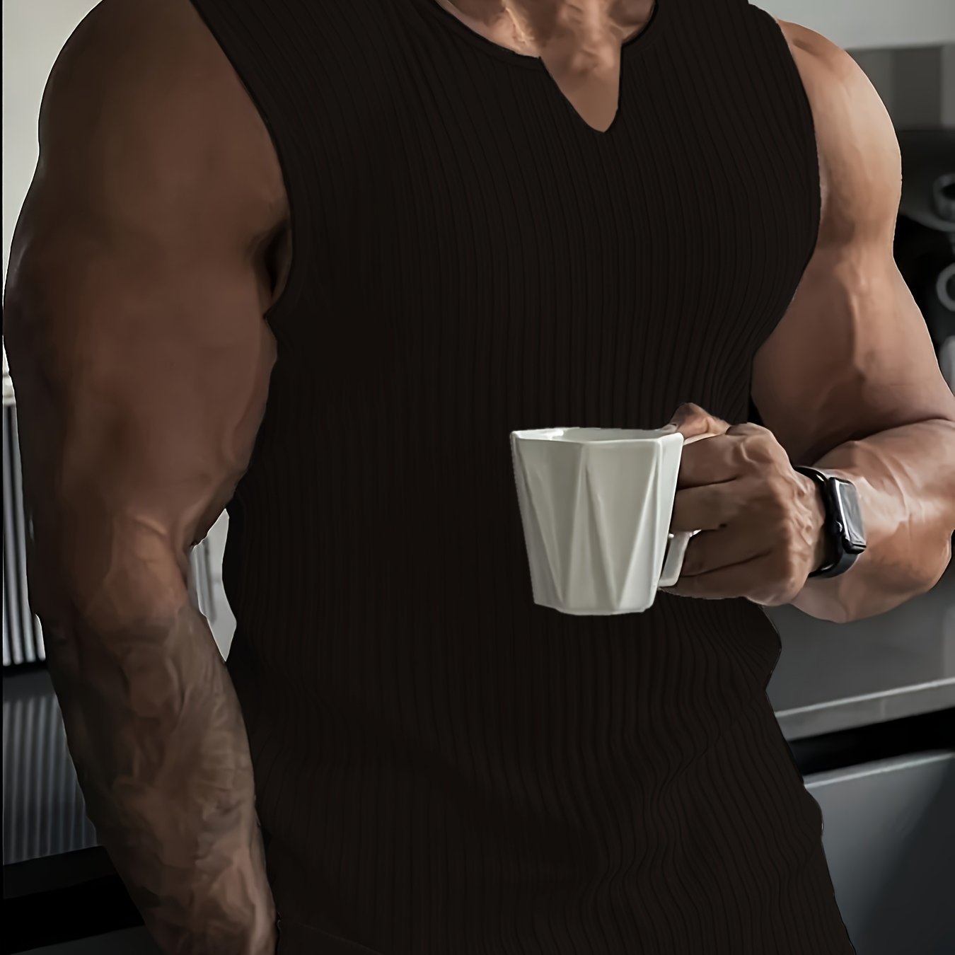 TEMU 남성용 핏 슬리브리스 캐주얼 스트레치 V넥 짐 탑