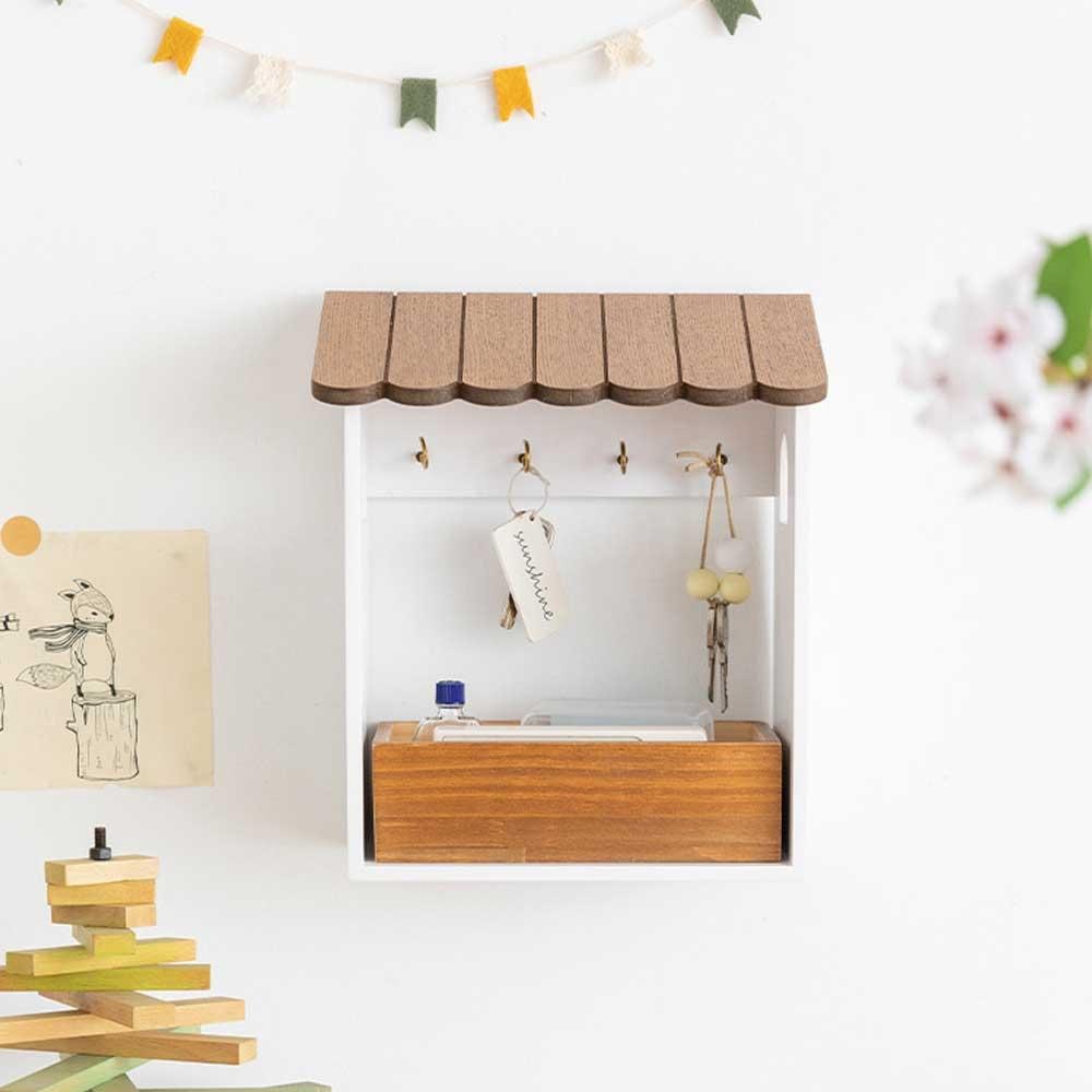 [해외] 미니하우스 원목 열쇠 수납함 벽걸이 선반 악세서리 보관함