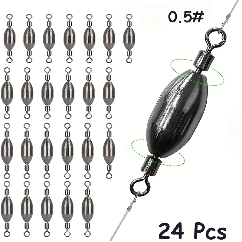 TEMU 24개입 소금물 낚시용 스위블 불렛 싱커, 민물 농어낚시용 황동 낚시 중량, 스위블 롤링 포함