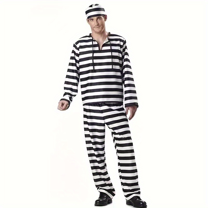 TEMU 성인용 할로윈 감옥 의상 - 검정과 흰색 줄무늬 긴팔 감옥 유니폼, '나는 나쁜 소년' 그래픽, 캐주얼 스타일, 폴리에스터 섬유, 할로윈 파티 및 테마 이벤트에 완벽함, 할로윈 코스튬 | 만화 테마 의상 | 내구성 있는 코스튬, 할로윈 코스튬
