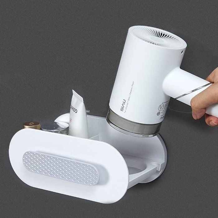 무타공 욕실 헤어 드라이기 고데기 거치대 스탠드 수납함 벽걸이