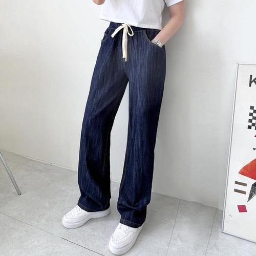 [다잇템]여성 캐쥬얼 레이온 고무줄 허리조임 청바지