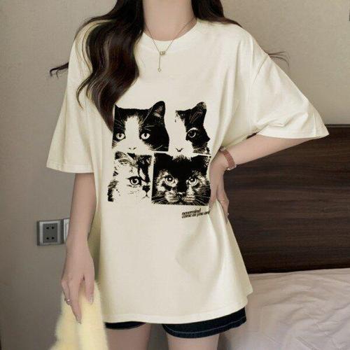 [모노무드]LMO 고양이 스타일프린트 여름철 하프티 티