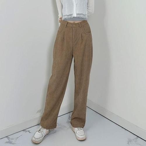MUGIO 여성 코듀로이 골덴 와이드 팬츠
