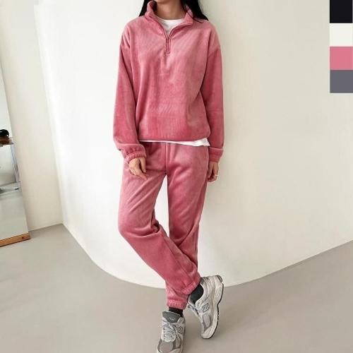 데일리 클래식 기모안감 여성용 하프지퍼골덴 조거 상하세트