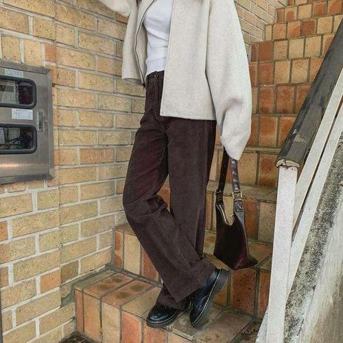 [다잇템_패션]여자 브라운계열 FW 와이드핏 골덴 고무줄 바지
