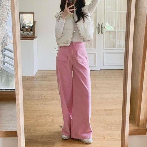 [신상오픈런]여자 무지컬러 면 스판 투포켓 세미와이드 골덴 바지