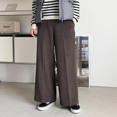 [셀러허브_여성트랜드패션]여성 골덴 바지 와이드 코듀로이 팬츠 밴딩 골지 벨로