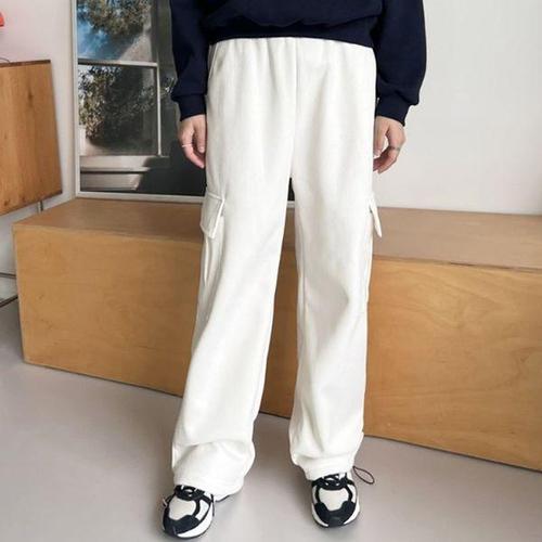 (대박난) 빅사이즈 여성 골덴 와이드 포켓 바지 가을 / 겨울 편한 날씬해보이는 아이보리 일자 무지 간절기 기모 빈티지 예쁜 패션 도톰한 3xl 4xl 뽀글이 안감 주름 롱 바지