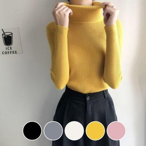 여성 5색 데일리 니트 골지 목폴라 STC-050001