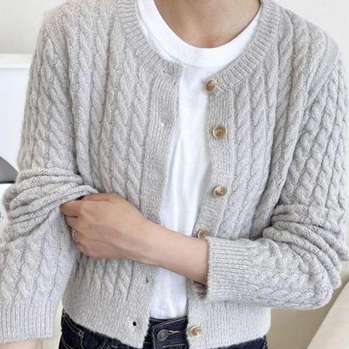 [에이치플러스몰]세미크롭 브이넥 왕골지 가디건 05 가을가디건 브이넥가디건 여성 단추가디건 여자 크롭..