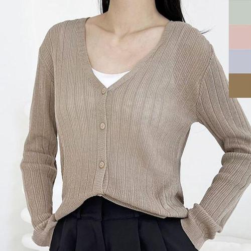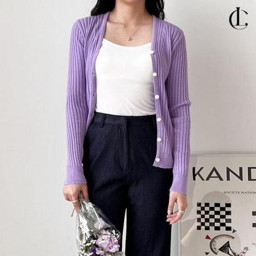 [다잇템]여성 슬림핏 골지 슬릿 V넥 가디건