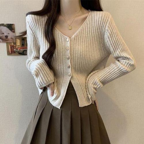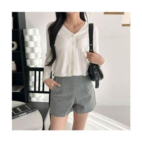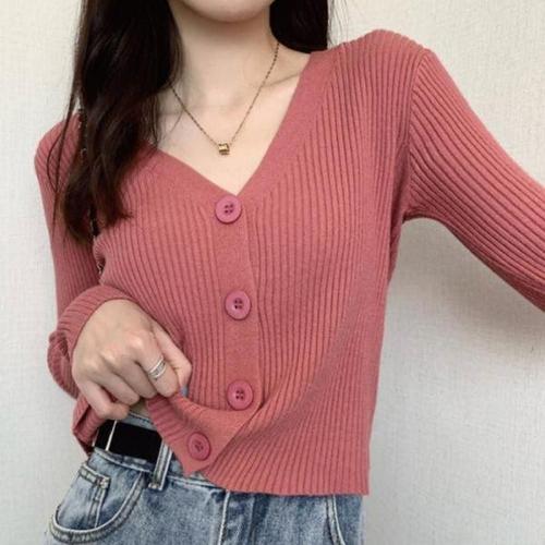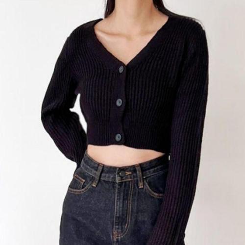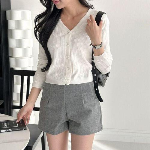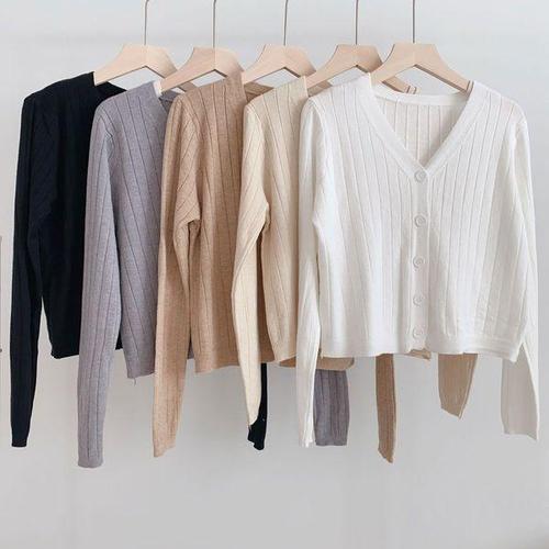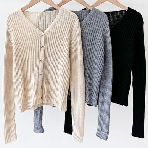 [셀러허브_여성트랜드패션]세미크롭 HL] 골지 브이넥 니트 가디건