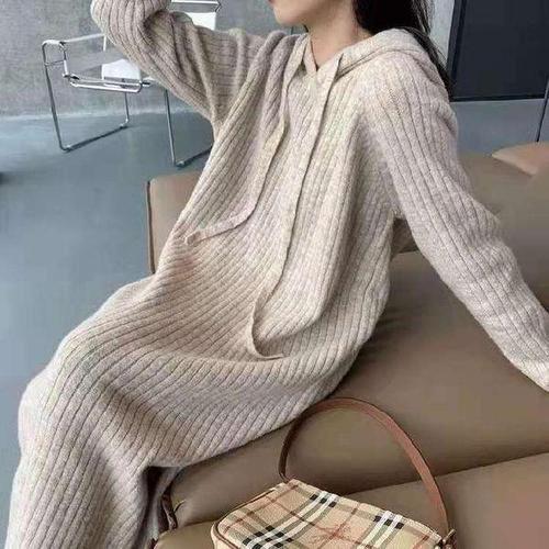 [나인포시즌]볼매 가을 겨울 골지 후드 홀가먼트 니트 롱 원피스 데일리룩